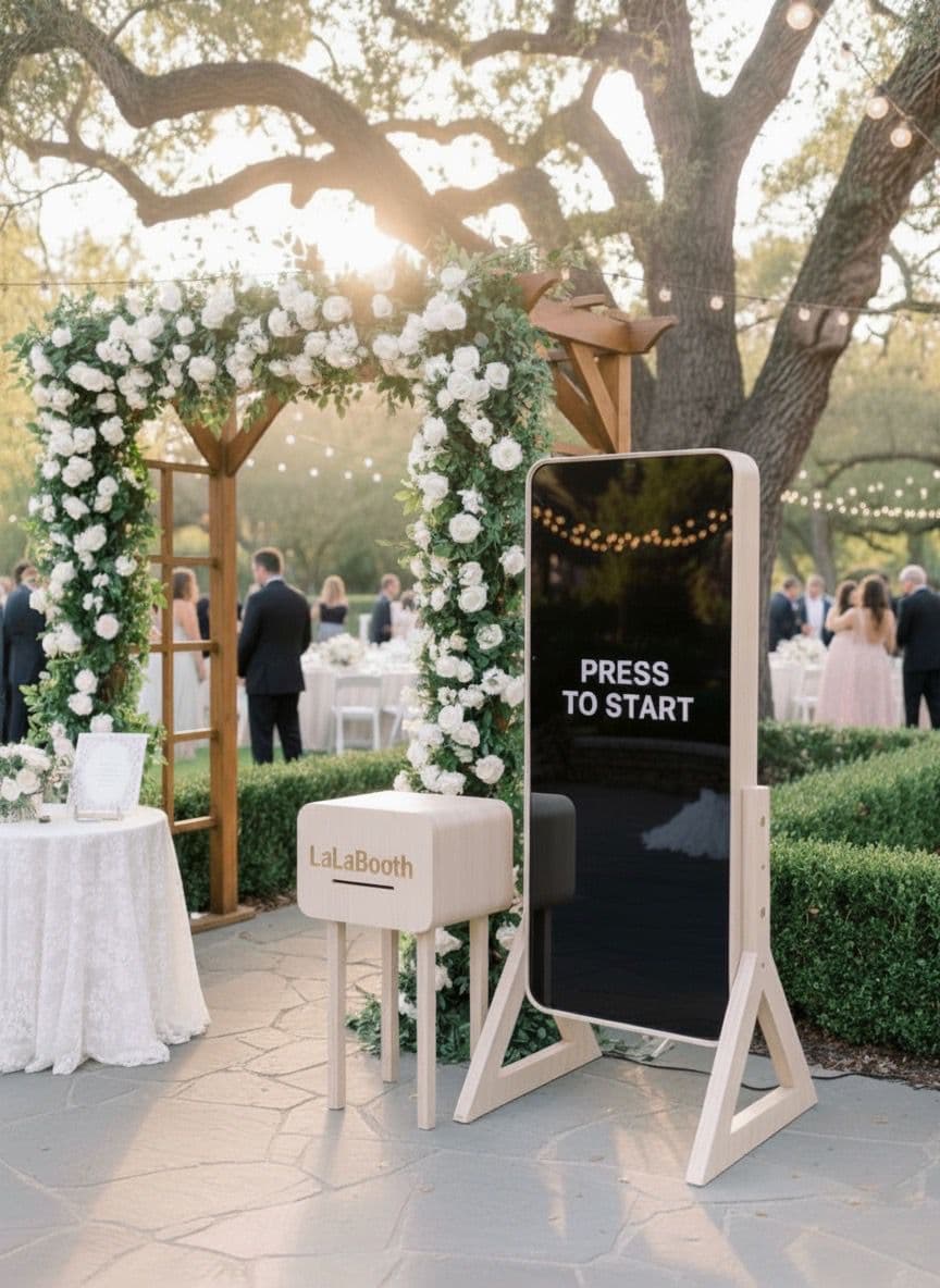Upgrade your celebration with a luxury photo booth near you. Designed for elegance and quality, the mirror photo booth set up offers studio quality photos and instant printing with digital sharing.