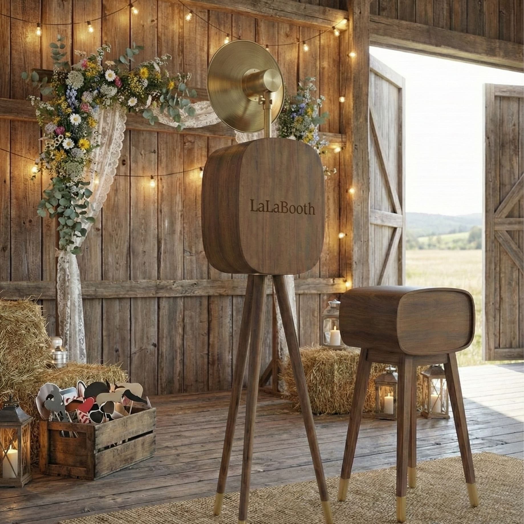 Our LaLa Booth brings a timeless, vintage aesthetic with a high-end modern upgrade. Featuring a signature gold beauty dish, this booth creates a soft, radiant glow that ensures every guest looks their absolute best.